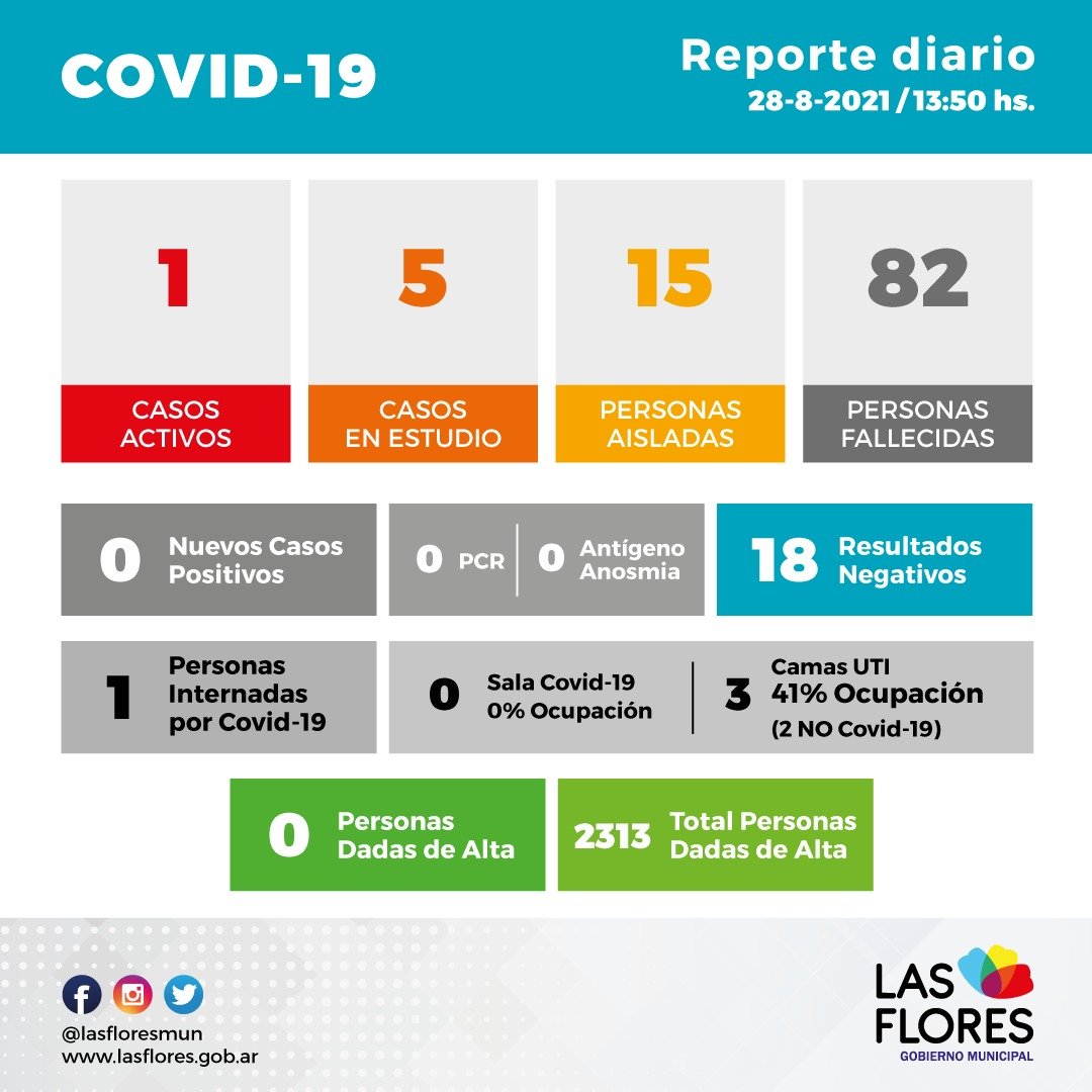 Al día de la fecha hay un 1 caso activo por Covid-19 y 5 casos en estudio.