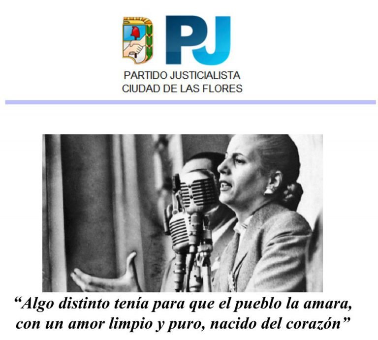 El Partido Justicialista de Las Flores conmemora, con sentidas palabras, a la Compañera Evita al cumplirse un nuevo aniversario de su natalicio.