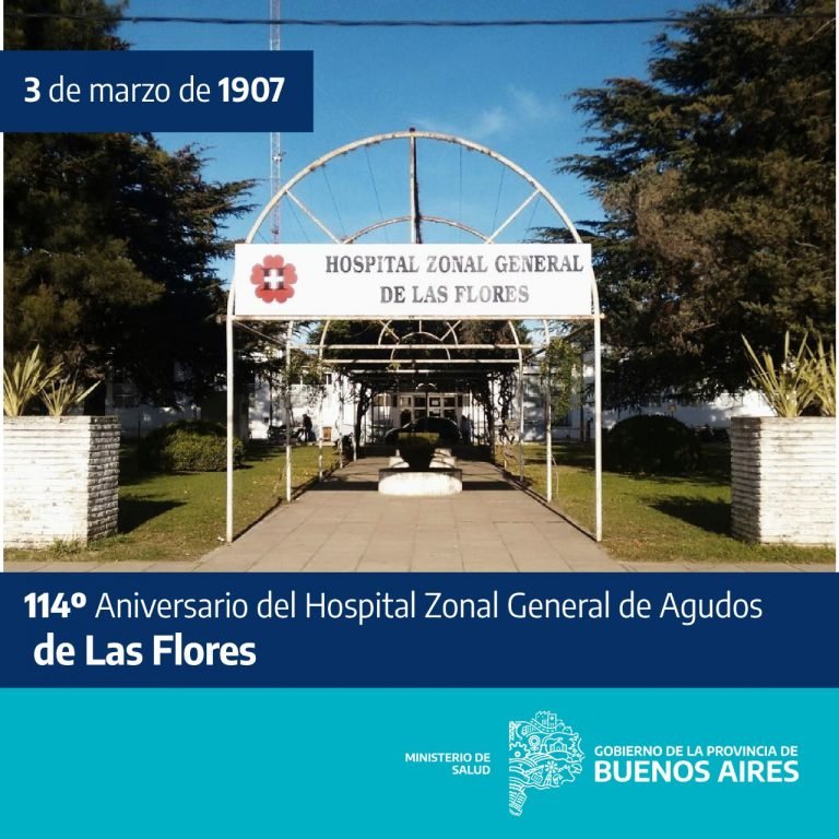 En el día de la fecha, el Ministerio de Salud de la Provincia de Buenos Aires reconoce y saluda al Hospital Zonal General de Las Flores, en el Centésimo décimo cuarto aniversario de su fundación.