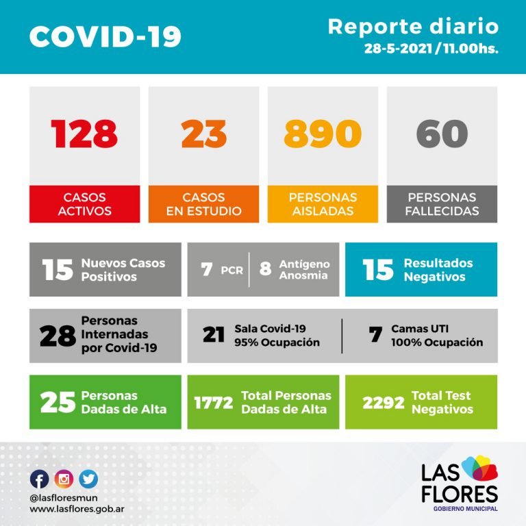Ingresaron nuevos resultados arrojando 15 positivos. 7 por medio de hisopados PCR y 8 por test de antígeno, anosmia y 15 resultados negativos.