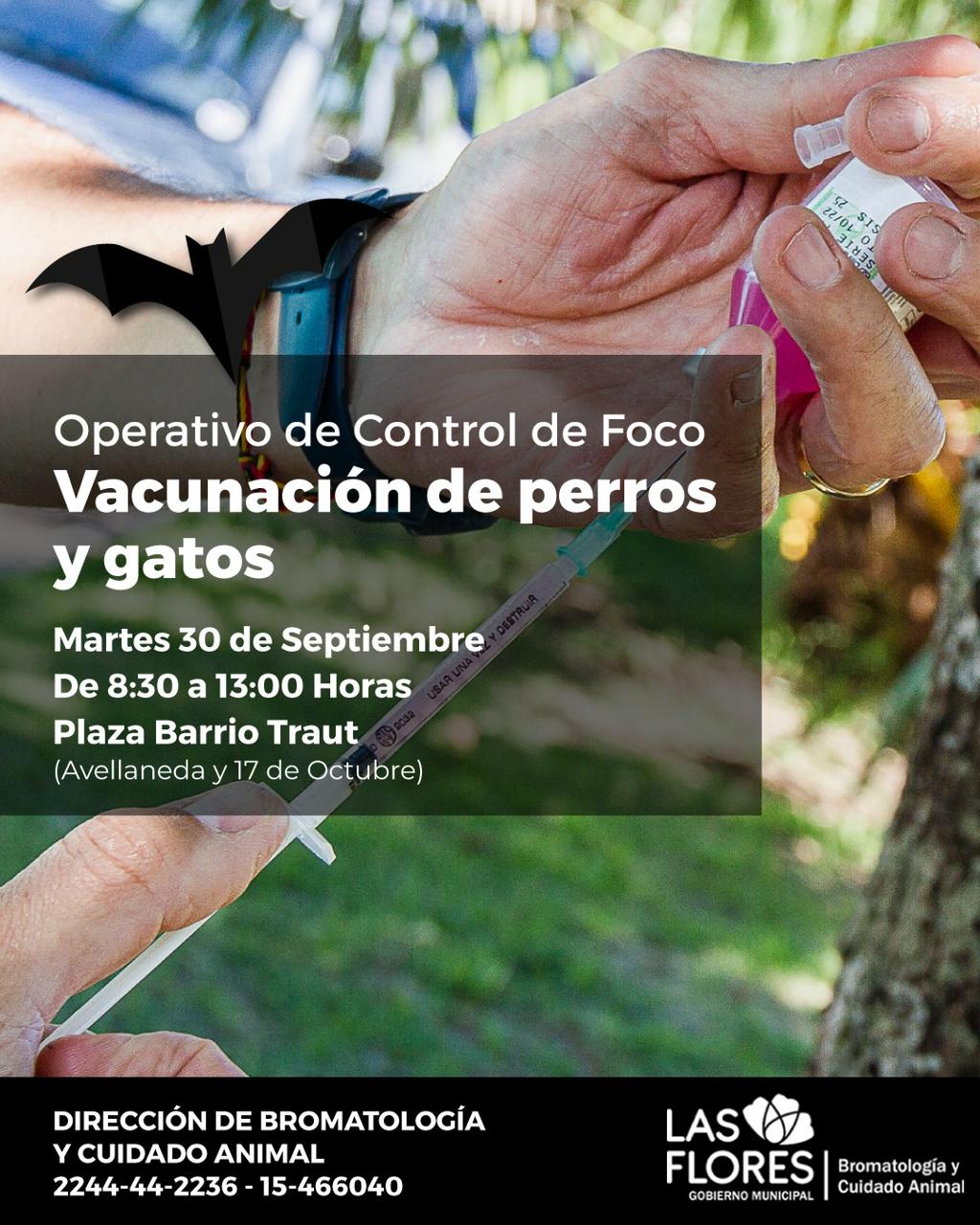 La Dirección de Bromatología y Cuidado Animal informa que, debido al hallazgo de un murciélago positivo a rabia en la zona, el MARTES 30/09 se realizará un operativo de control de foco en las cuadras aledañas al CAPS BARRIO TRAUT.
