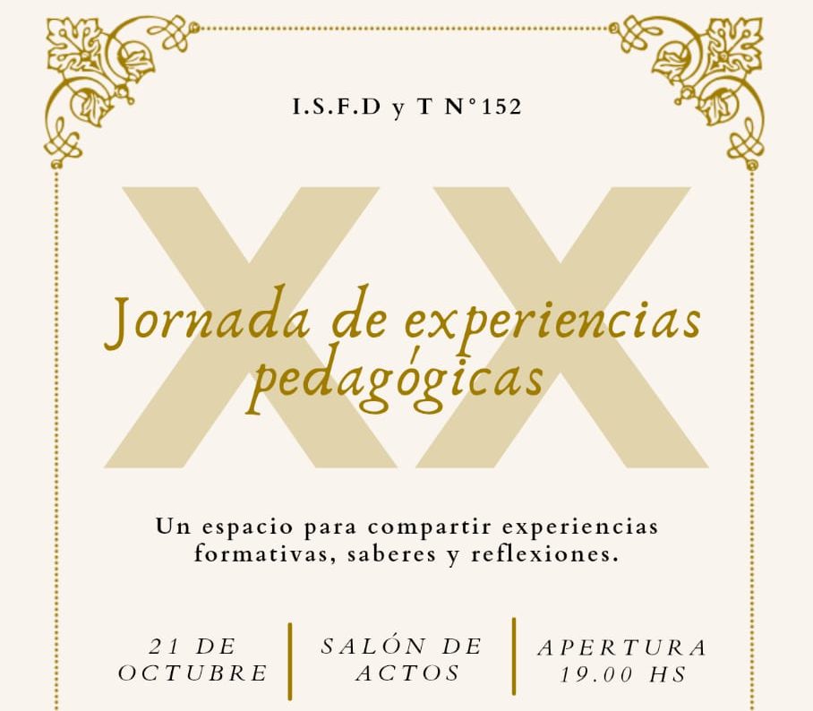 El Instituto de Formación Docente y Técnica N°152 invita a las «XX JORNADAS DE EXPERIENCIAS PEDAGÓGICAS» . Se trata de una muestra Itinerante de lo trabajado en las distintas carreras durante el año.
