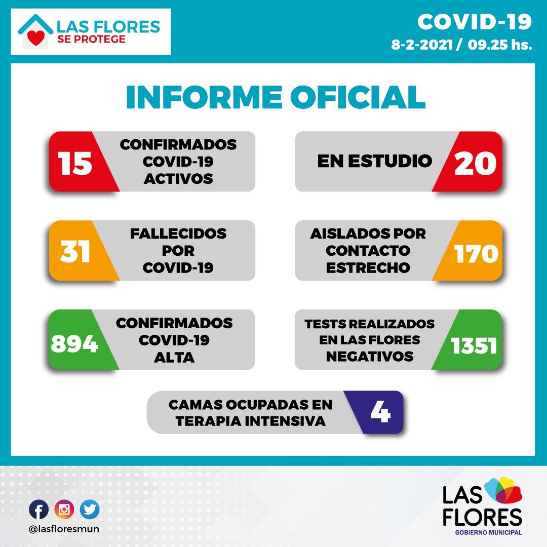 Al día de la fecha hay un total de 15 casos activos por Covid-19 y 20 casos en estudio.