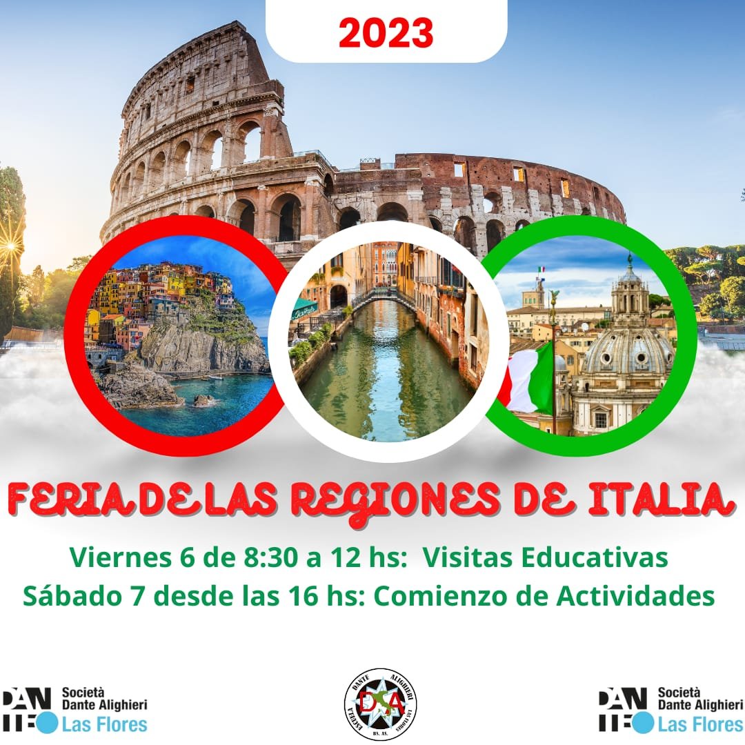 La Escuela Dante Alighieri invita a la 5ta Edición de Feria de las Regiones de Italia, que se llevará a cabo los días 6 y 7 de Octubre.