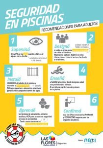 Por lo tanto, desde la Dirección de Natatorios se informa que esta semana se están desarrollando las actividades correspondientes a la seguridad en piscinas. Dicha actividad tiene como objetivo que los niños aprendan las 6 normas básicas en el ámbito de la piscina y que los adultos reciban información sobre las recomendaciones esenciales para evitar accidentes.