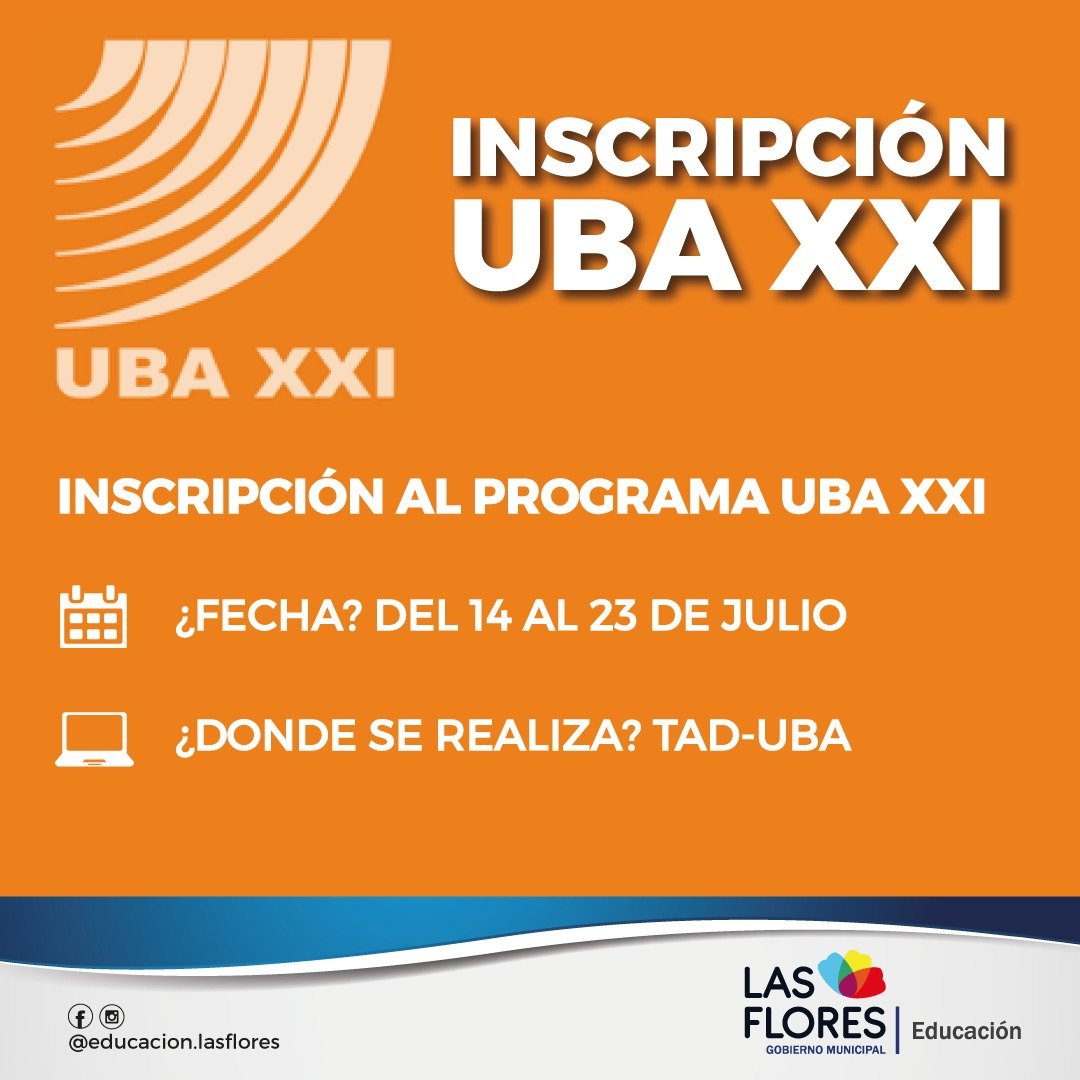 La Secretaría de Educación informa que del 14 al 23 de julio se encuentra abierta la inscripción al Programa UBA XXI, para quienes se inscriben por primera vez.