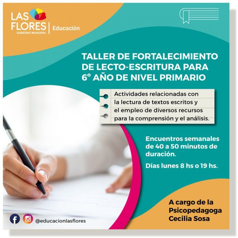 La Secretaría de Educación informa que se encuentra abierta la inscripción para el Taller de Fortalecimiento de Lecto-Escritura para estudiantes que se encuentran transitando el último año del Nivel Primario de la ciudad de Las Flores.