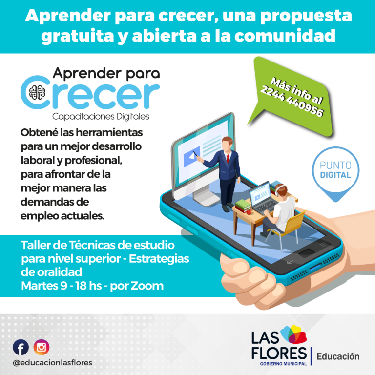 La secretaría de Educación de la Municipalidad de Las Flores comunica que se encuentra abierta la inscripción para el Taller Gratuito de Técnicas de Estudio para Nivel Superior que se dictará mañana martes 9 de marzo a las 18 horas.