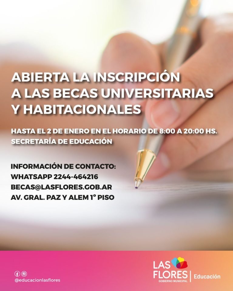 Para más información, comunicarse con la Secretaría de Educación (Av. General Paz y Alem, 1er piso), por WhatsApp 2244-464216, o por correo electrónico a becas@lasflores.gob.ar.