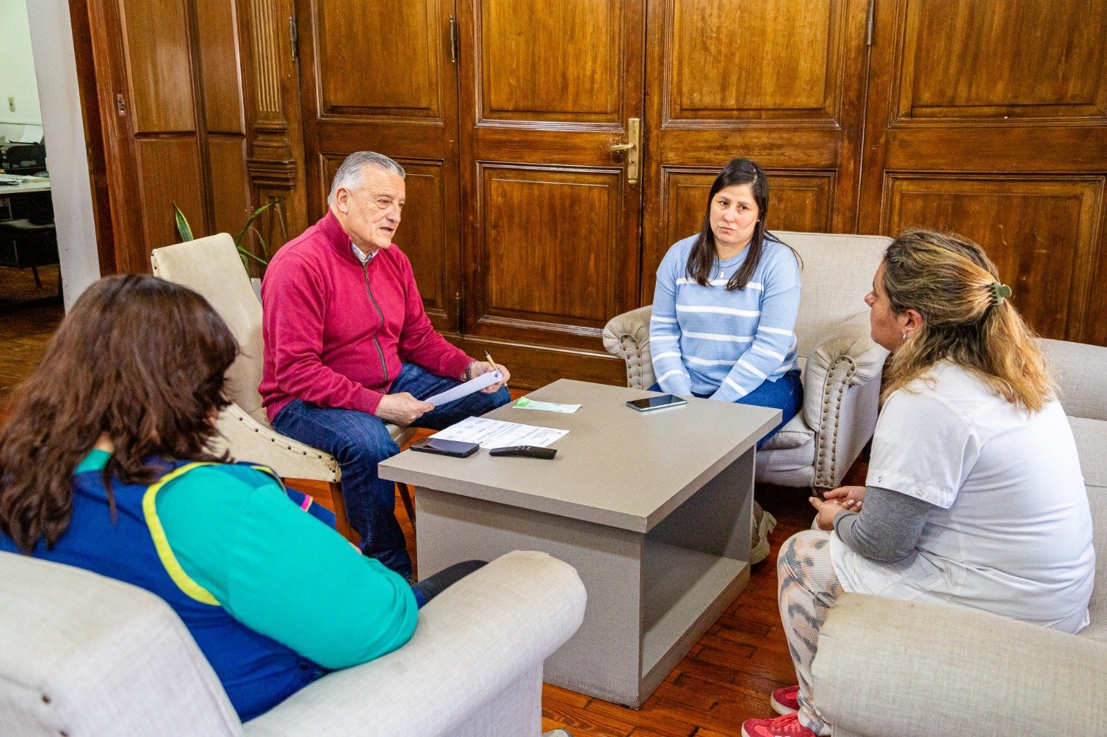 El intendente Alberto Gelené, acompañado por la directora de Políticas Educativas, Silveria Giménez, recibió a integrantes de las comunidades educativas de las Escuelas Primarias 31 y 19.