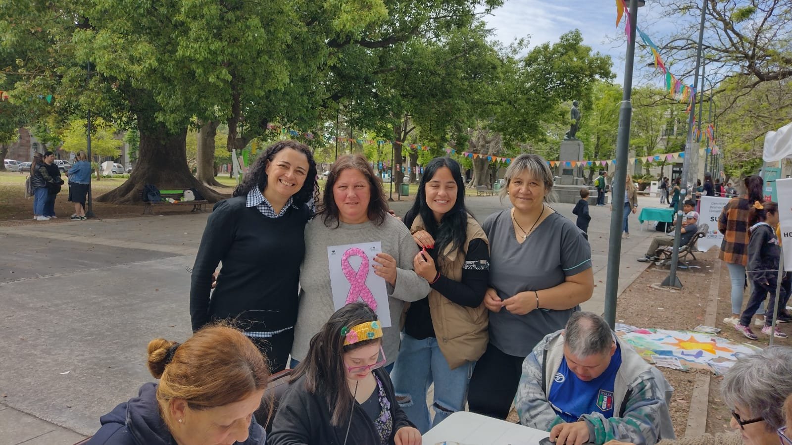 Durante esta sesión, las participantes pudieron trabajar habilidades motoras mientras compartían un espacio de encuentro y concientización sobre la importancia de la detección temprana y la prevención del cáncer de mama. Se realizaron lazos de color rosa que luego fueron colocados en distintos comercios de la ciudad.
