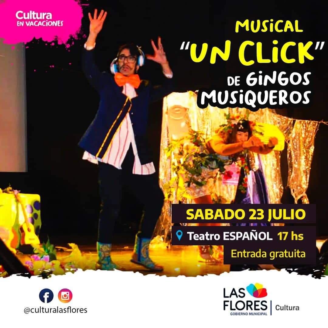 17 hs. – Teatro Español: “Cultura en vacaciones”, Musical: “Un Click” de Gingos Musiqueros. ATP, Entrada gratuita.