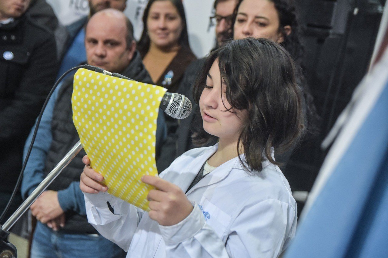 Tras la entonación de las estrofas del Himno Nacional Argentino, el Cura Párroco realizó la invocación religiosa y las alumnas Delfina Laborde y Lara Municoy de 6° año de la Escuela N° 18 brindaron un mensaje alusivo a esta fecha tan importante para el camino de nuestra nación.