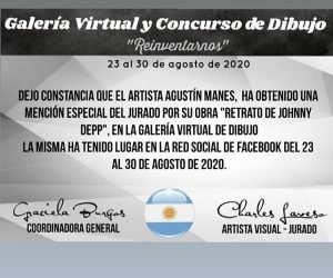 El certamen en el que participó se desarrolló a nivel nacional, tuvo alrededor de 200 artistas y es denominado Galería Virtual y Concurso de Dibujo «Reinventarnos».