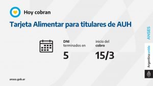 En el marco del Plan Argentina contra el Hambre del Ministerio de Desarrollo Social, la ANSES acompaña con el pago de la tarjeta Alimentar. Hoy perciben el beneficio quienes cobren la AUH con documentos concluidos en 5.