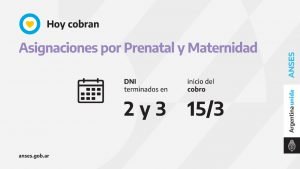Las titulares de la Asignación por Prenatal y Asignación por Maternidad con documentos terminados en 2 y 3 perciben hoy su prestación.