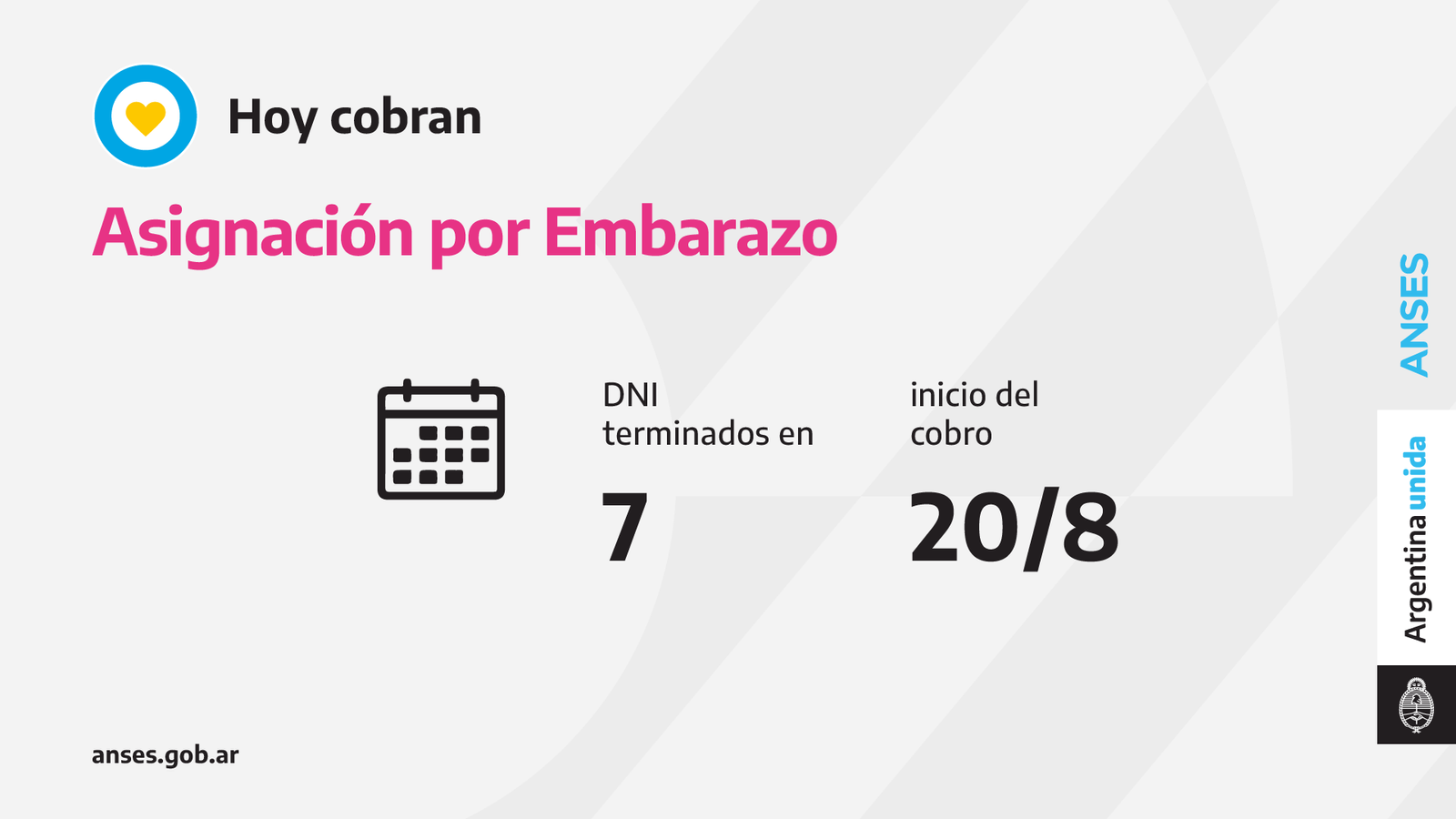 Con la utilización de la tarjeta de débito, hoy cobran la Asignación por Embarazo las titulares con documentos finalizados en 7.