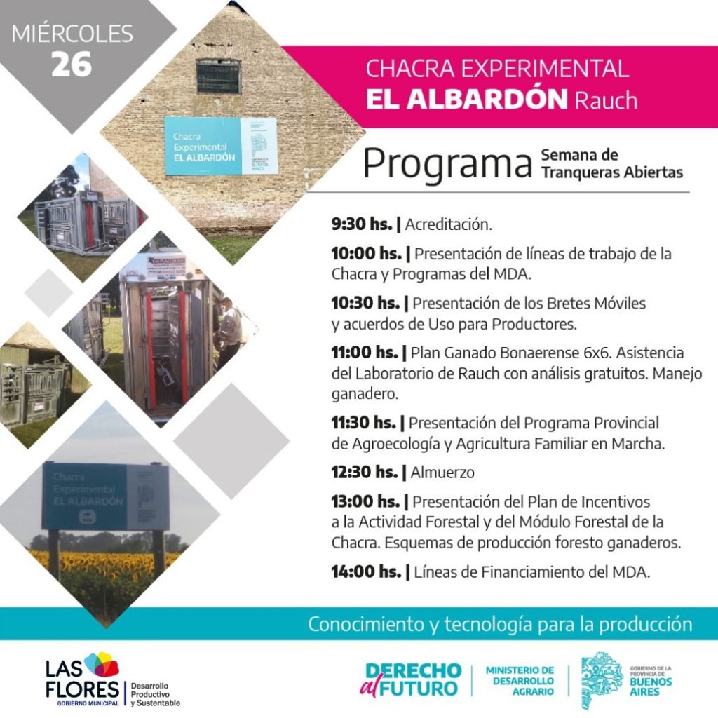 Las Chacras Experimentales del Ministerio de Desarrollo Agrario de la provincia de Buenos Aires realizan desde el 24 al 29 de abril, en marco de la “Semana de Tranqueras Abiertas”, distintas charlas y actividades de difusión de los Programas que están a disposición de productores y productoras.