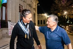 El intendente Alberto Gelené; el presidente del Concejo Deliberante; Fabián Blanstein; y los secretario de Deportes y Cultura, Fernando Muñiz; y de Gobierno y Relaciones Institucionales, Martín Boggini, recibieron a los atletas que cumplieron una excelente actuación en el XLIV Torneo Nacional de Máster de Pista y Campo.