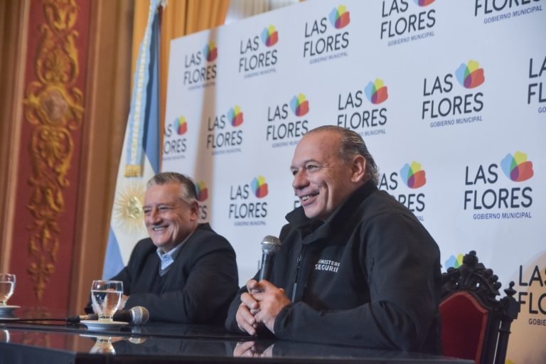 El ministro de Seguridad de la provincia de Buenos Aires, Sergio Berni, visitó Las Flores en la mañana de este martes 24 de mayo. Fue recibido por el intendente Alberto Gelené en el Palacio Municipal, donde hizo entrega de siete móviles policiales para el Comando de Patrulla Rural y donde anunció la llegada próximamente de otras ocho unidades para la Policía Comunal.