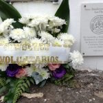 Posteriormente, y como estaba programado, se colocó una ofrenda floral y se descubrió una placa en la cruz central del cementerio local, en recordatorio de bomberos, socios y miembros de la comisión fallecidos. Al mediodía el Intendente, ing. Alberto Gelené, los recibió en el palacio municipal, donde hizo entrega de un cheque por un valor de aproximadamente 4 millones de pesos.