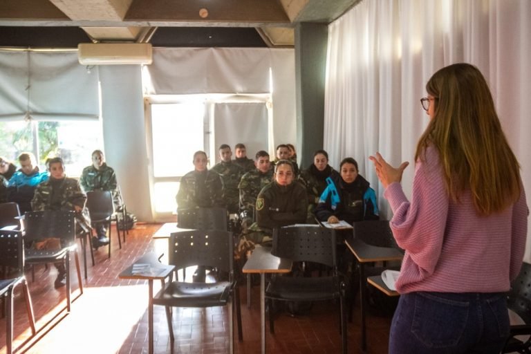 La charla estuvo a cargo de las Lic. Guillermina Etcheverry y María Clara García de la Dirección de Políticas de Género municipal, de la Jefa de Comisaría de la Mujer y la Familia, oficial principal Yanina Ecilapé, la segunda jefa, oficial inspector Vanina Cotelo, Celeste González y Manuela Cieza del equipo Interdisciplinario de la Comisaria de la Mujer y la Familia, Betiana González y Lucila Anativia personal de CMF.