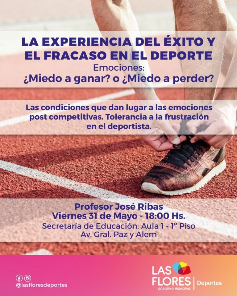 La Municipalidad de Las Flores invita a la charla «La experiencia del éxito y el fracaso en el Deporte» a cargo del profesor José Ribas, que se llevará a cabo el viernes 31 de mayo a las 18 horas en el Aula 1 (primer piso) de la Secretaría de Educación (Alem y Gral. Paz).
