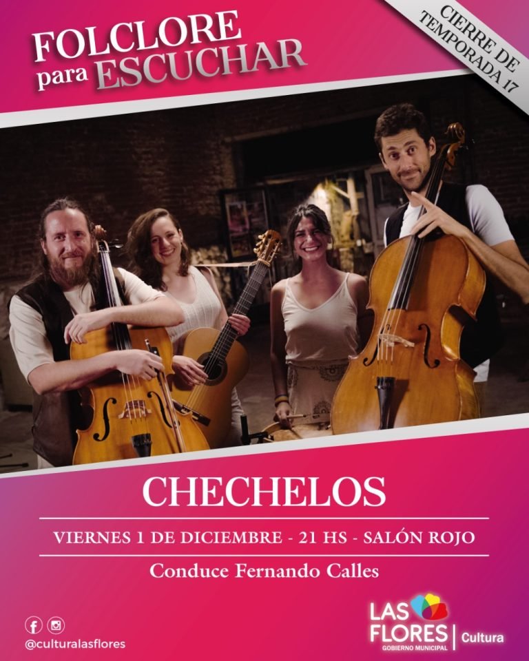 “Chechelos”, folclore argentino y del bueno, sonará fuerte en el Salón Rojo Municipal, en un evento ideado y conducido por Fernando Calles con apoyo de la Secretaría de Cultura.