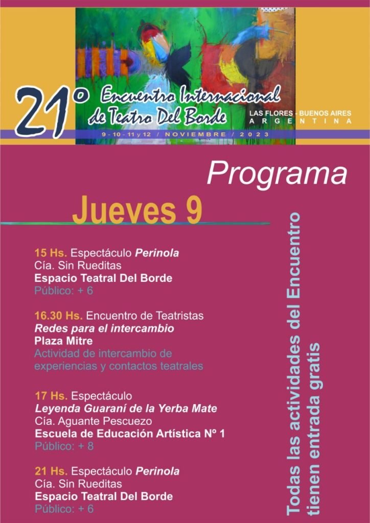Comenzará esta tarde en Las Flores y se extenderá hasta el día domingo 12 de noviembre inclusive el 21° Encuentro Internacional de Teatro del Borde