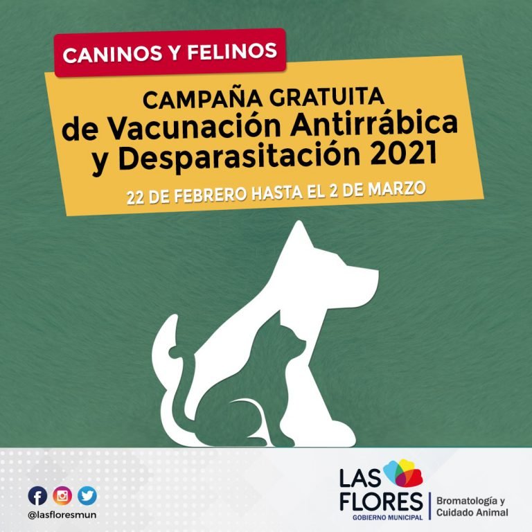 La Dirección de Bromatología y el Área de Cuidado Animal dependiente de la Secretaría de Salud Pública municipal, comunica que el próximo lunes 22 de febrero comienza la Campaña Gratuita de Vacunación Antirrábica 2021.