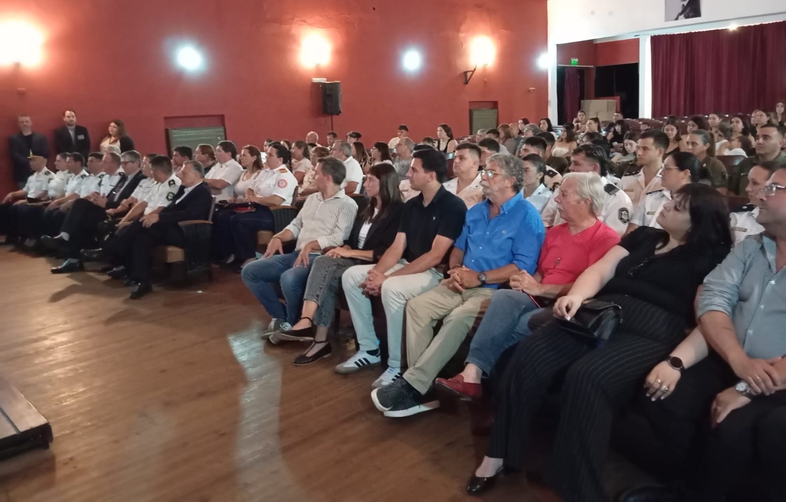 Acompañaron el acto autoridades policiales, efectivos de las distintas dependencias policiales con sus familias. autoridades municipales, presidente del Concejo Deliberante y concejales e integrantes del foro de seguridad.