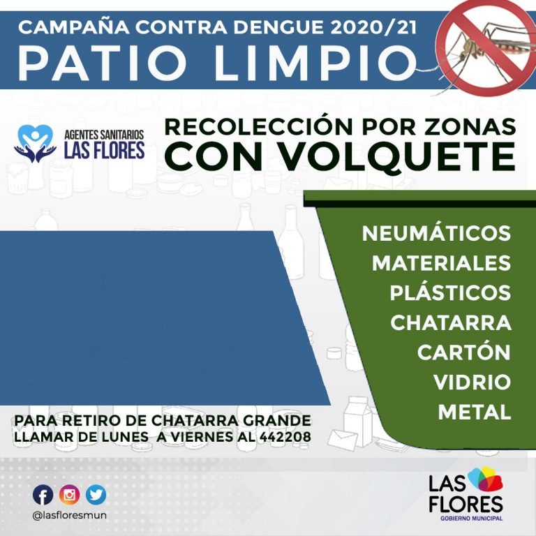 La Secretaría de Salud Pública informa que comenzó a desarrollarse en distintas zonas de la ciudad, la campaña de concientización, prevención y descacharrización denominada “Patio Limpio 2020-2021”, que lleva a cabo conjuntamente la Dirección de Salud y la Secretaría de Obras Públicas, readecuando la campaña y el accionar de los agentes involucrados en las tareas, en base a la situación epidemiológica provocada por el Covid-19.