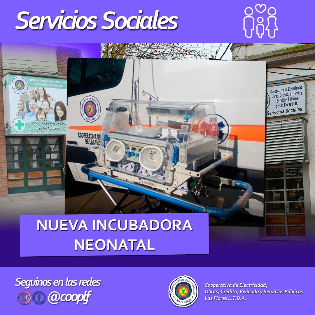 «Nuestra Cooperativa incorpora, a sus Servicios Sociales, una nueva incubadora para el traslado de pacientes recién nacidos que se encuentren en estado crítico» así lo expresa un comunicado enviado por el Gerente de la entidad Ingeniero Pedro Chervero.