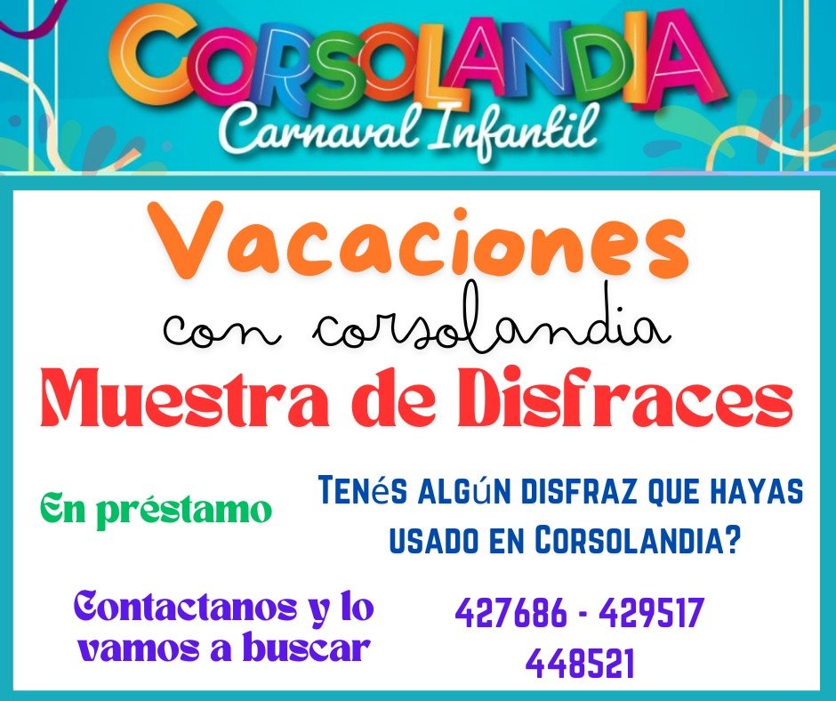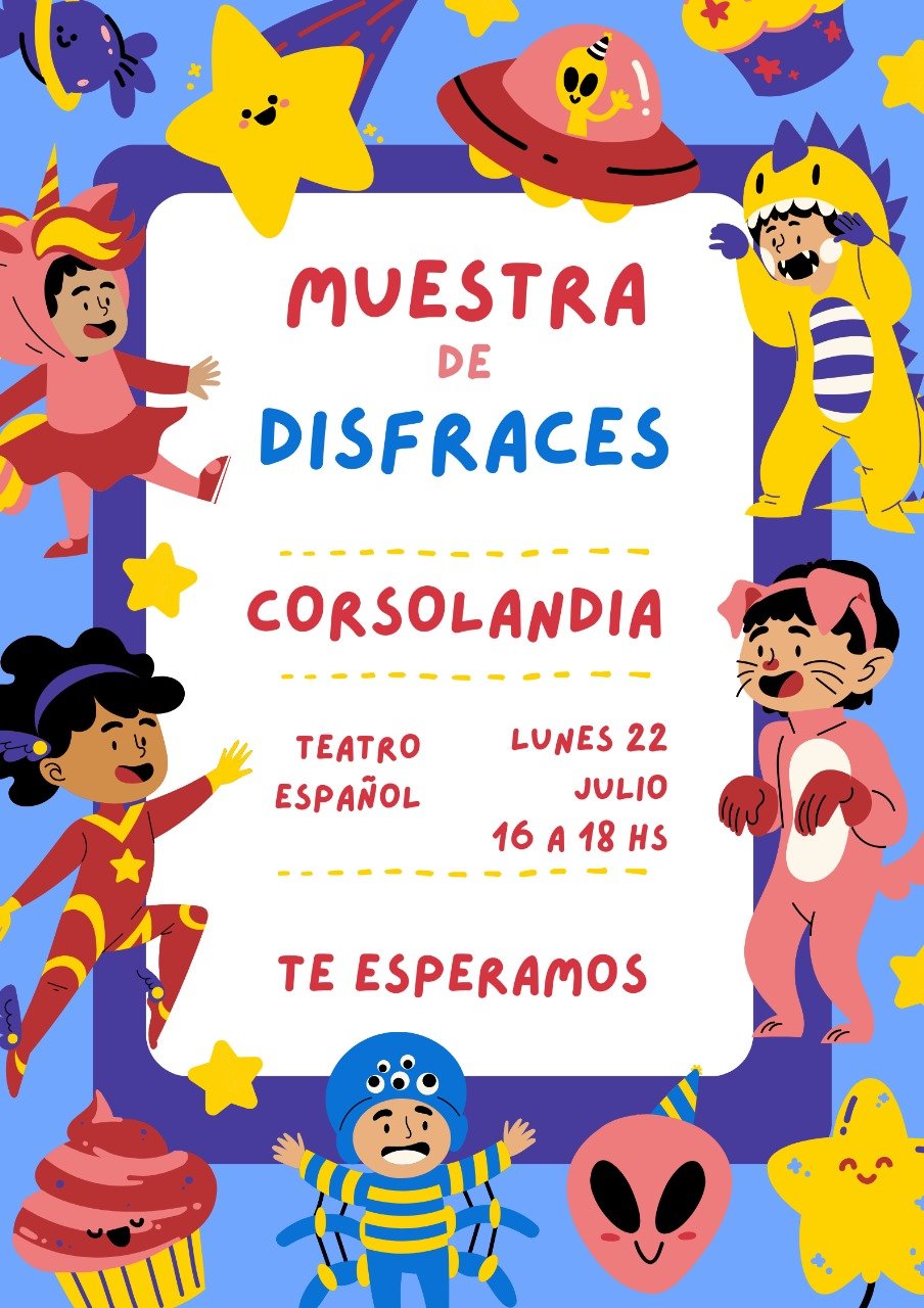 La comisión de Corsolandia organizó para estas próximas vacaciones de invierno, una muestra de disfraces. Será el lunes 22 de julio en el Teatro Español desde las 16 y hasta las 18 hs.