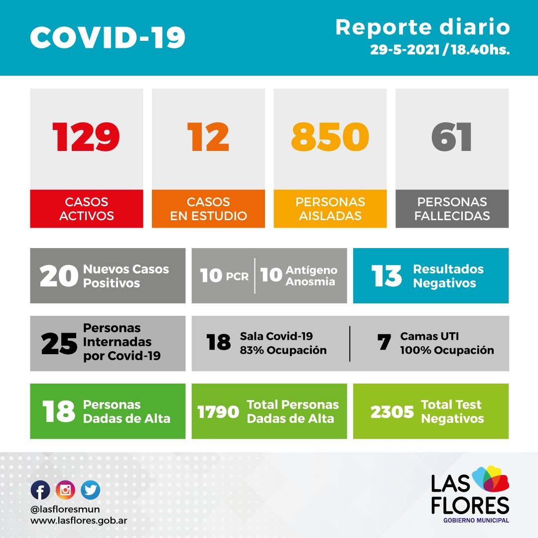 En las últimas horas se dieron de alta a 18 pacientes activos, quedando al dia de la fecha un total de 129 casos activos por Covid-19.
