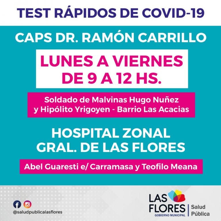 Ante la presencia de síntomas compatibles y si las personas cumplen con ser mayores de 50 años, embarazadas, inmunocomprometidos o personas con comorbilidades deberán acercarse al centro de testeo ubicado en CAPS Ramón Carrillo del Barrio Las Acacias, ubicado en Soldado de Malvinas Hugo Núñez entre Harosteguy e Hipólito Yrigoyen, y/o al Hospital.