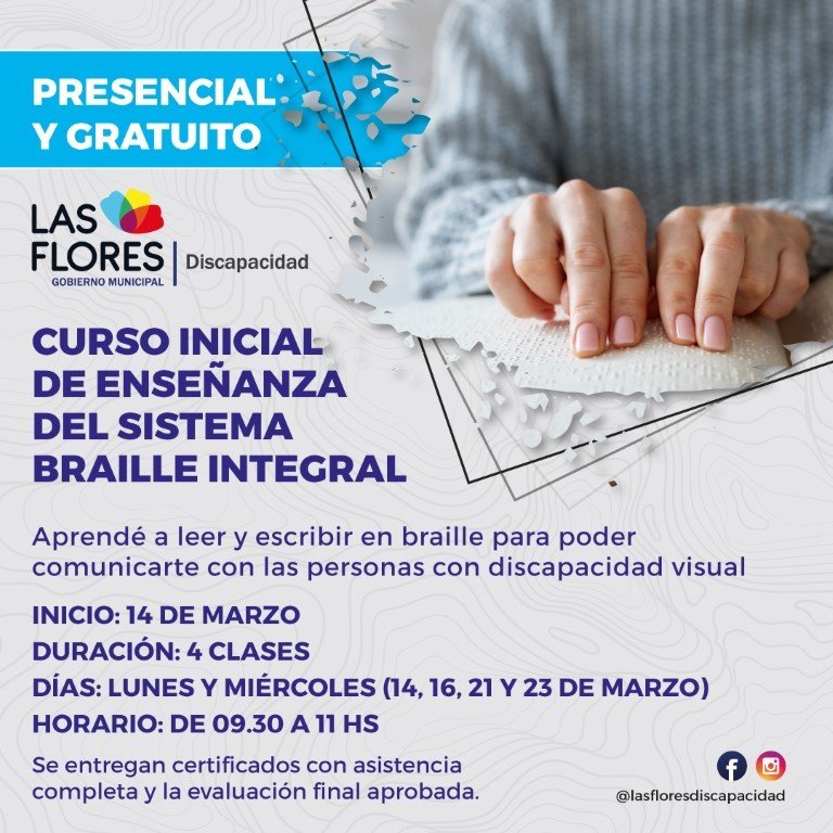 La Dirección de Discapacidad de la municipalidad informa que encuentra abierta la inscripción al Curso Inicial de Enseñanza del Sistema Braille Integral.
