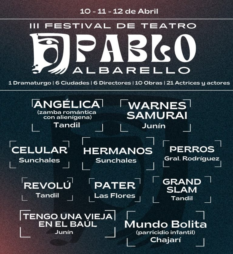 Participan en la actividad puestas en escena del reconocido autor argentino, provenientes de Chajarí (Entre Ríos), Sunchales (Santa Fe), Junín, Tandil, Gral. Rodríguez y Las Flores (Buenos Aires). La organización está a cargo de los espacios Bajosuelo y Arte y Parte de Tandil.