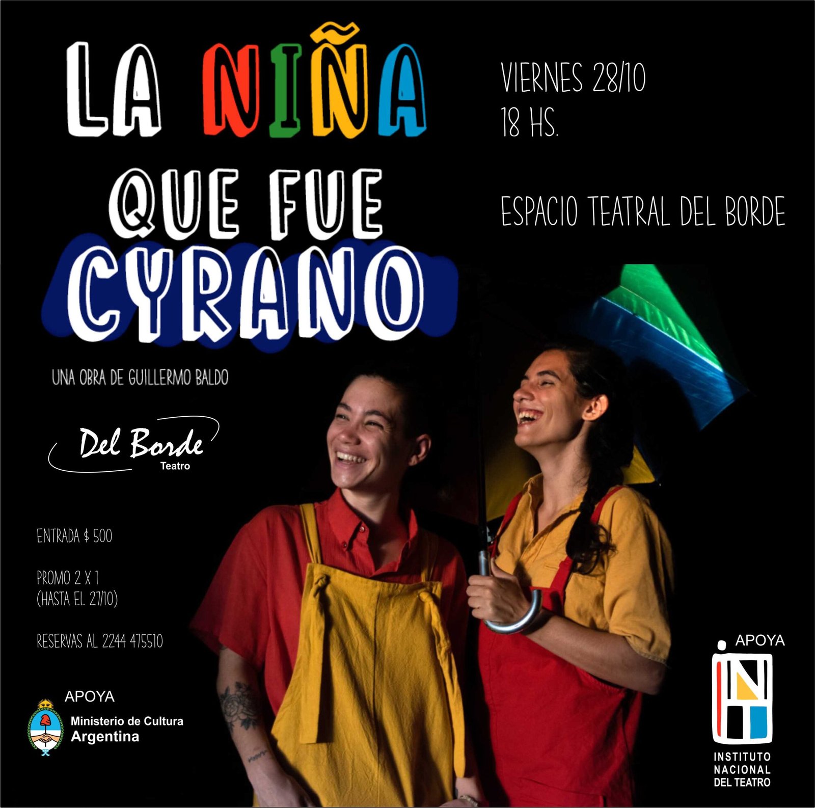 El próximo viernes 28 a las 18 Hs. en el Espacio Teatral Del Borde, se presentará La niña que fue Cyrano, con actuaciones de Agustina Bosco y Sol Oliveto, dirigidas por Hernán Verteramo, sobre texto original de Guillermo Baldo.
