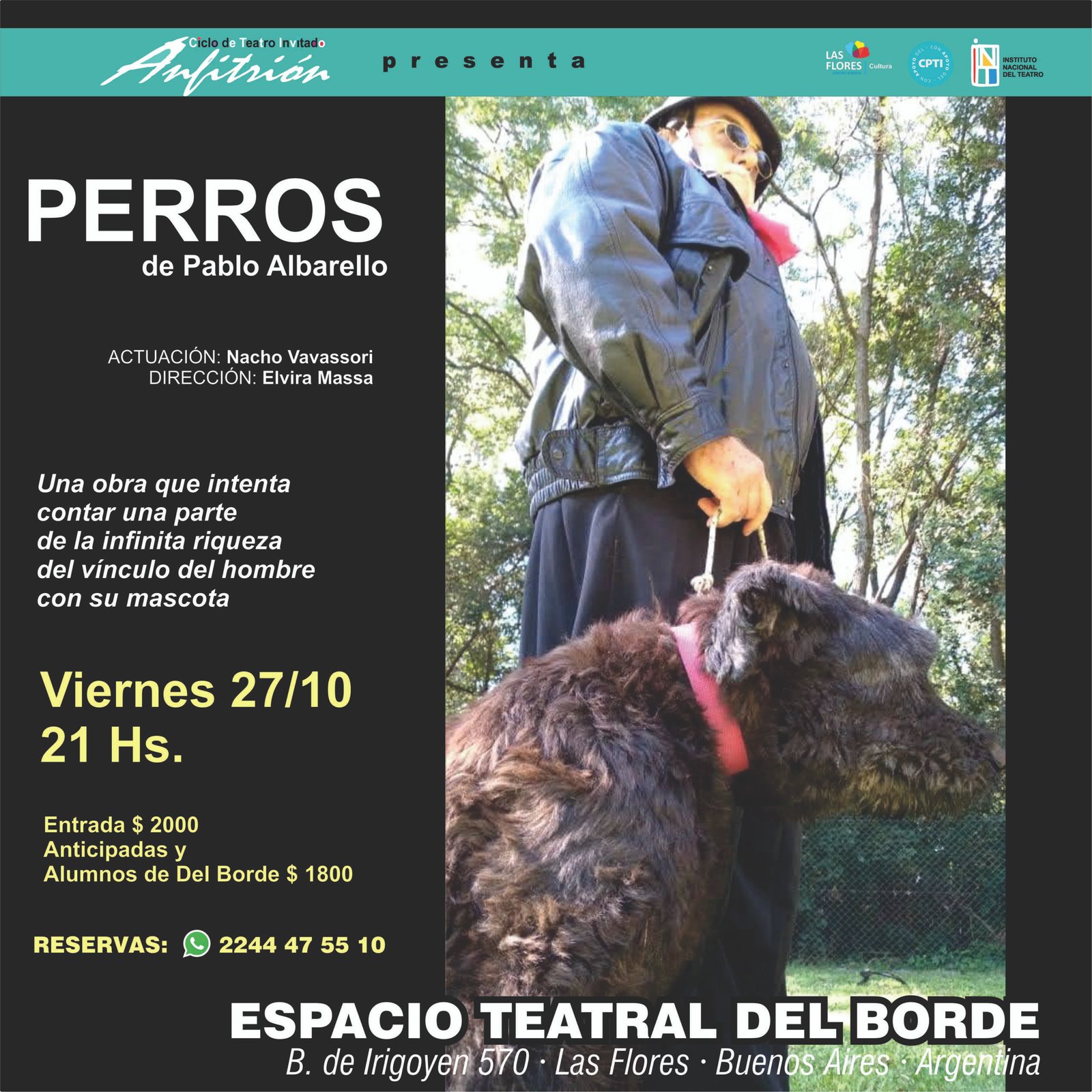 Se trata de Perros, una comedia dramática de Pablo Albarello, protagonizada por el genial Nacho Vavassori y dirigida por Elvira Massa.
