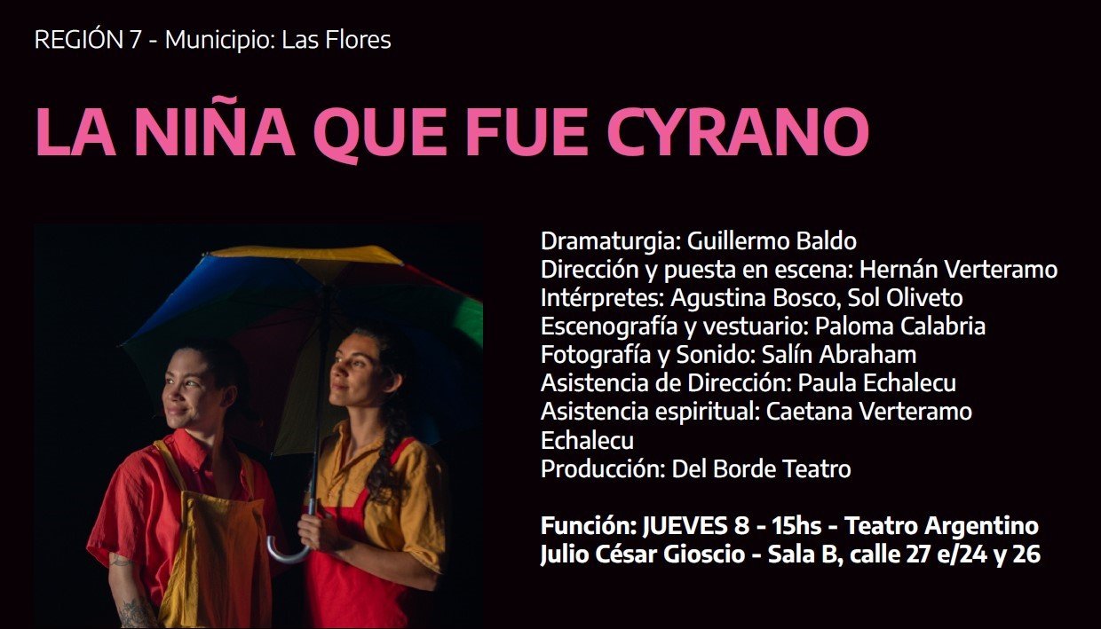 Luego de ser seleccionada en la Fiesta Regional realizada en Bolívar en abril pasado, la obra “La niña que fue Cyrano” se presentará en Mercedes.