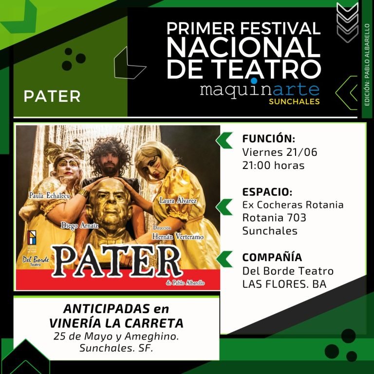 Del 20 al 23 de junio se realizará en Sunchales, provincia de Santa Fe, el Primer Festival Nacional de Teatro Maquinarte, donde Del Borde fue seleccionado para participar con su obra “Pater”.