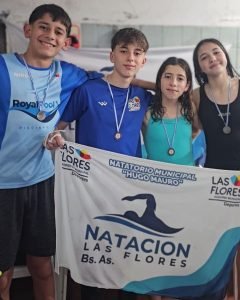 Posta cadetes 4×50 libres mixta: 2°) Domingo Scarpitti, Candelaria Lemma González, Guadalupe Valerio y Gonzalo Onzari.