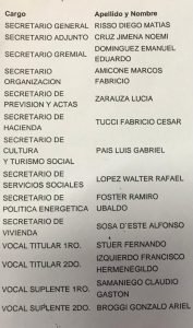 Tras las elecciones celebradas los días 17 y 18 de diciembre del año pasado, el Sindicato Regional de Luz y Fuerza informó la nueva conformación de su comisión directiva que encabeza Diego Matías Risso como Secretario General… (imagen con todos los cargos)