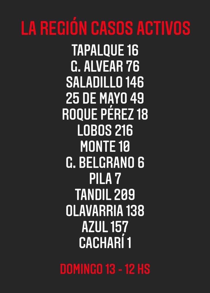 En la mañana de éste domingo desde la Secretaría de Salud Pública se comunicó que, los resultados de los casos que aún están en estudio, serán informados o en el transcurso del día de hoy por la noche, o en el día de mañana lunes, por la mañana. Mientras tanto continuamos con 4 casos activos en nuestra ciudad.