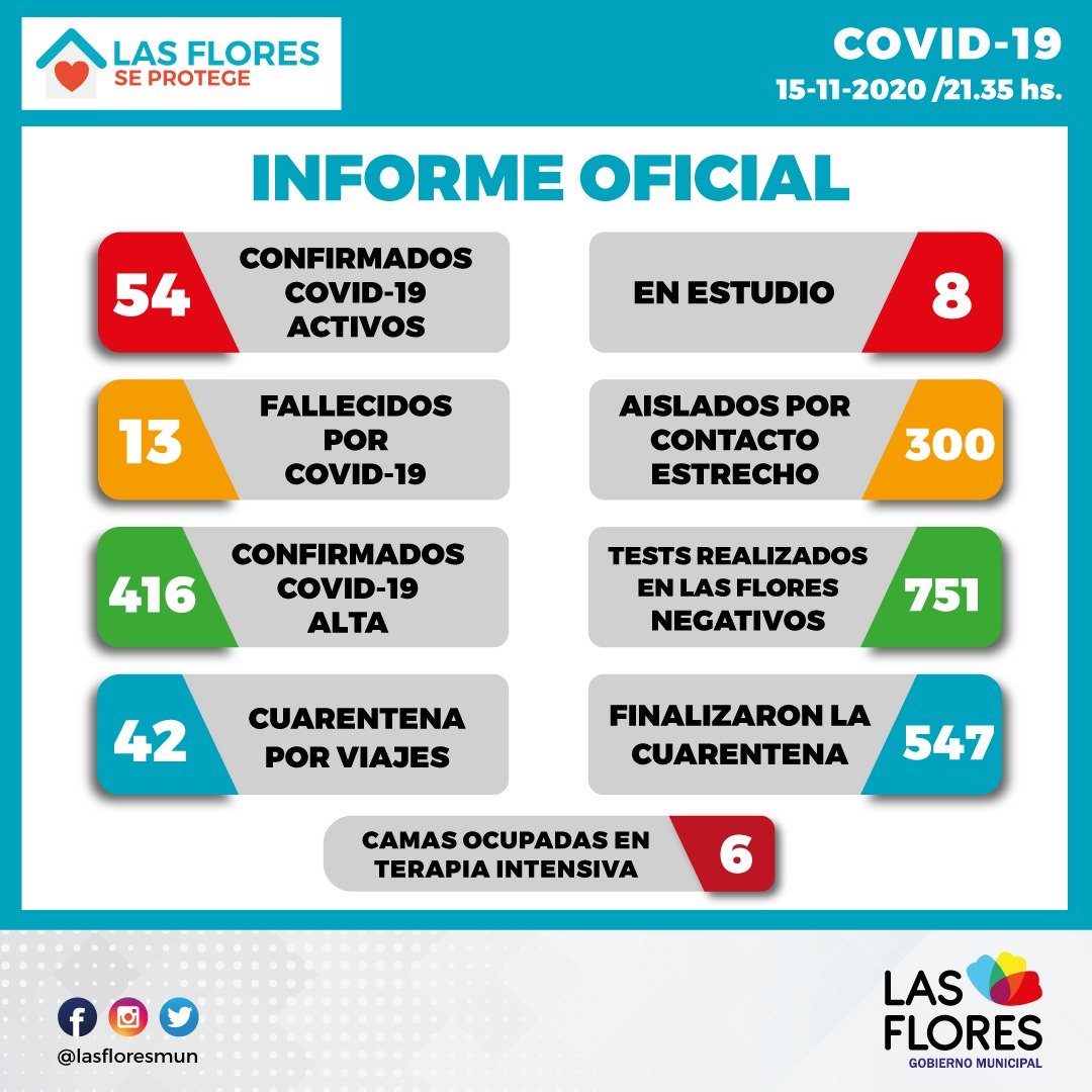 Al día de la fecha hay un total de 54 casos activos por Covid-19 y 8 casos en estudio.