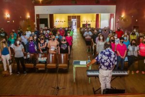 La bienvenida en el Salón Rojo Municipal a las cinco de la tarde fue la antesala de la Clínica Coral a cargo de Marcelo Valva.