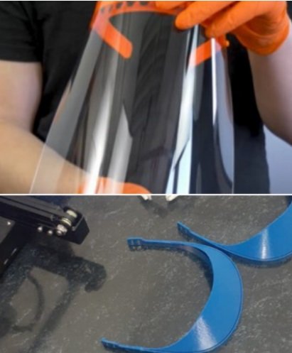 Fue así como se comenzaron a imprimir estos soportes para los protectores faciales. Están colocándoles el acetato para después entregarlos a quienes los van a usar.