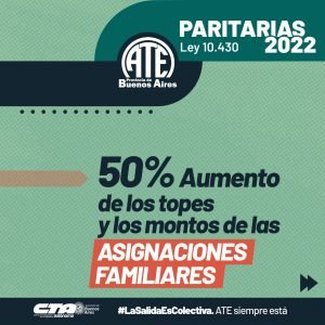 Otro de los puntos planteados por ATE y tomado por el gobierno provincial es el del aumento de los topes y los montos de las Asignaciones Familiares en un 50%.