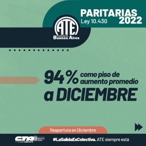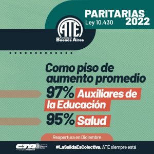 La misma, a pedido de ATE Bonaerense, contará con aumentos a aplicarse durante los meses de octubre, noviembre y diciembre, con la reapertura de paritarias en el último mes del año, lo que permitirá si se aplica un nuevo aumento terminar con salarios por encima de la inflación.